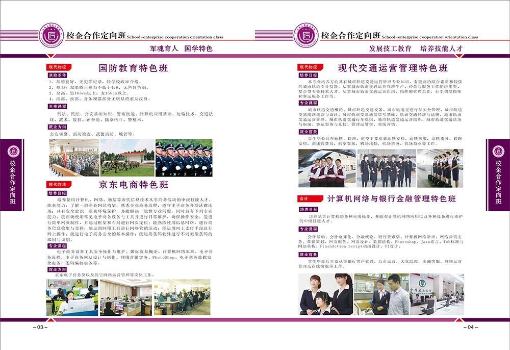 按照“學校有特點、專業(yè)有特色、教師有特技、學生有特長”的辦學嬰求,堅持索質教育和技能教育并重,采用準軍事化、半封閉式學生管理模式。開設緊貼市場需求的幼教、護理、計算機應用、城市軌道、航空服務、現代物流、茶藝、工程造價、會計、電子商務、酒店管理,藥物制劑、工商企業(yè)管理、樓宇、郵輪乘務、電子技術、導游,新增計算機網絡、交通客運服務、汽車維修、建筑工程管理,無人機、美術,休閑體育等優(yōu)質專業(yè)(方向).